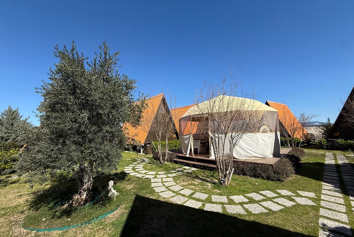 Die Anlage besteht aus 9 voll ausgestatteten, zweigeschossigen Holz-Bungalows und wird derzeit als betriebsbereites Tourismus- und Beherbergungsunternehmen genutzt. Gleichzeitig eignet sie sich ideal als privater Rückzugsort für Familien, die ein naturnahes und ruhiges Lebensumfeld suchen.